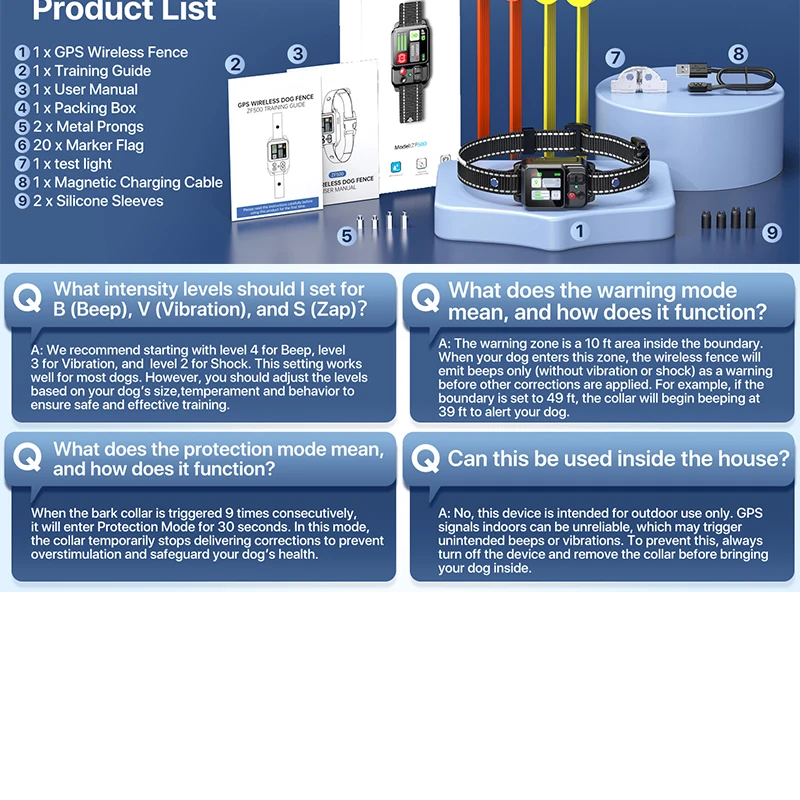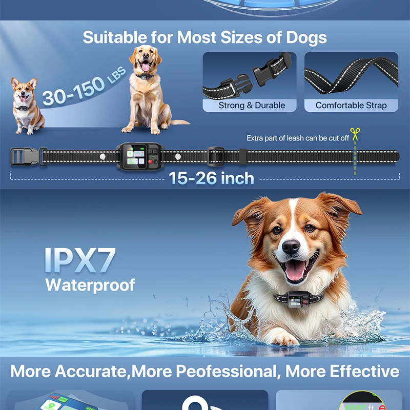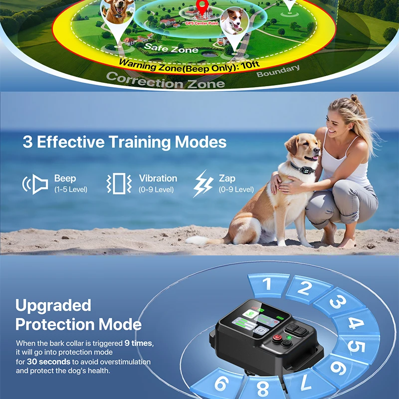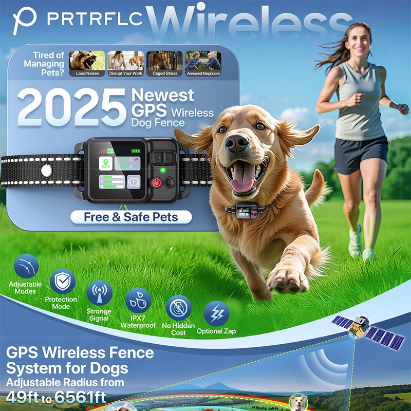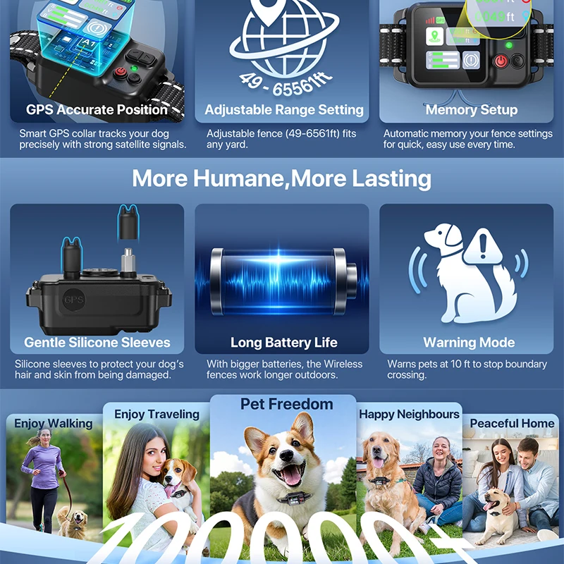 GPS Dog Wireless Fence Coverage Range 49-6561 Feet IP67 Waterproof Adjustable Training Modes GPS Positioning Outdoor Use Only