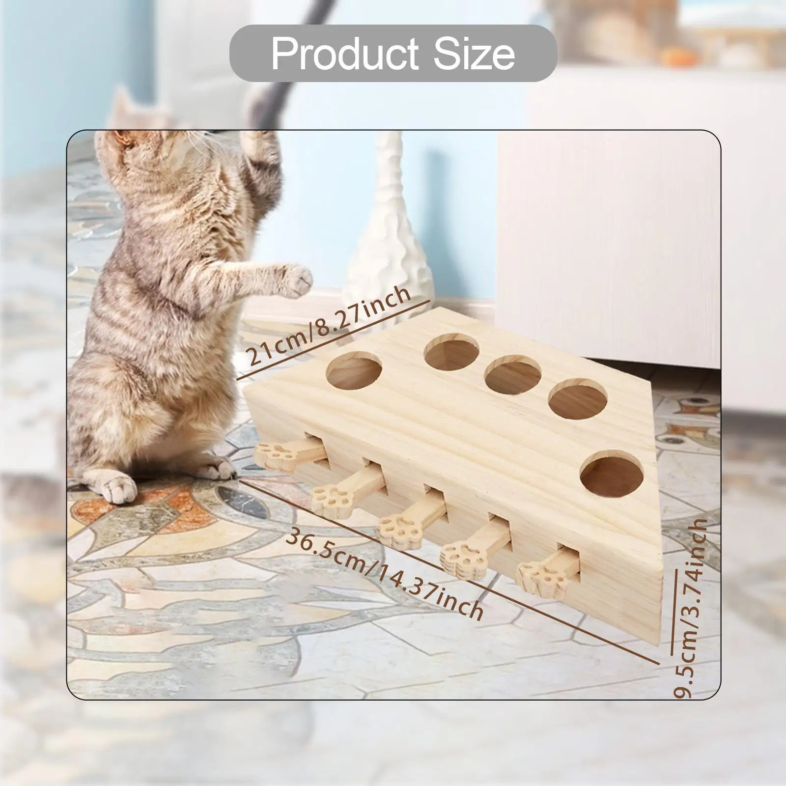 Wooden Whack-A-Mole Cat Toy Fun Cat Scratching Wonder Indoor Pet Cat Five-Hole Digging Box Interactive Self-Amusing Puzzle Toy